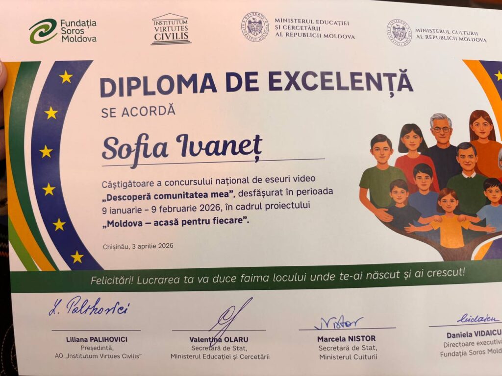 Ceremonia de premiere a câștigătorilor concursului național de eseuri video „Descoperă comunitatea mea”, desfășurat în cadrul proiectului „Moldova – acasă pentru fiecare”, a reunit tineri talentați din întreaga țară. ![]()