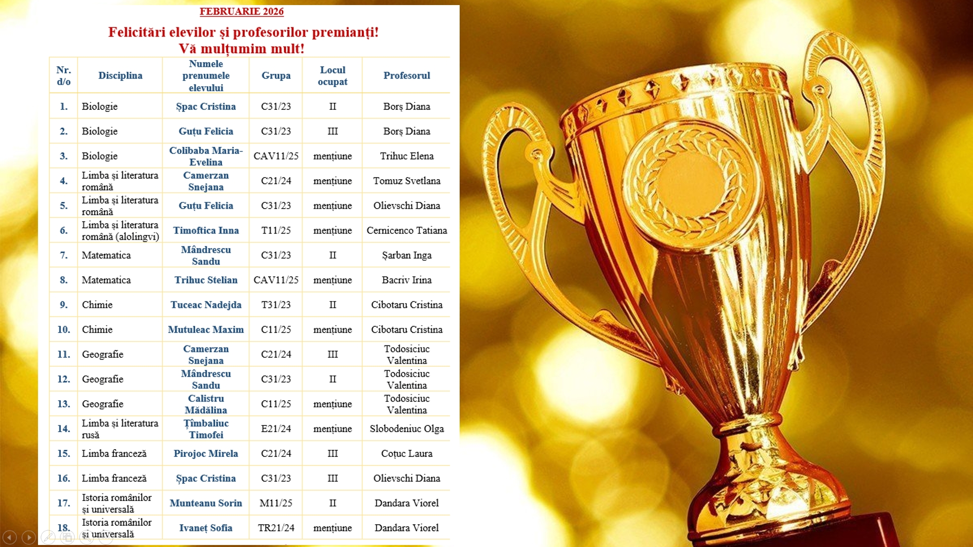 Suntem mândri de elevii și profesorii noștri!